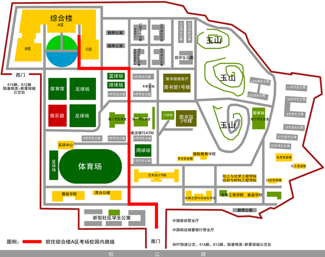 五、前往综合楼A区考场校园内路线