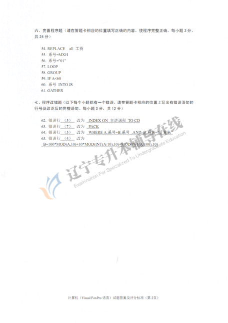 64. 错误行 (5) 改为 WHERE A.系号=B.系号 .AND. B.系名="计算机"