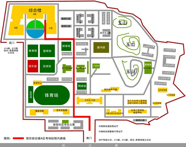五、前往综合楼A区考场校园内路线
