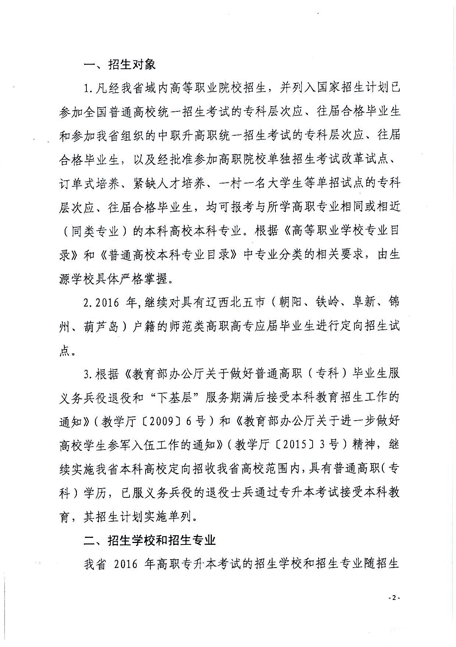 2、2016年,继续对具有辽西北五市(朝阳、铁岭、阜新、锦州、葫芦岛)户籍的师范类高职高专应届毕业生进行定向招生试点。