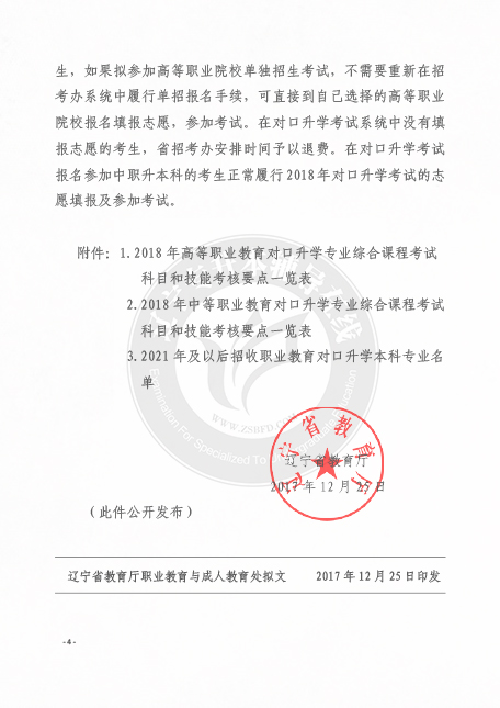 辽宁省教育厅职业教育与成人教育处拟文 2017年12月25日印发