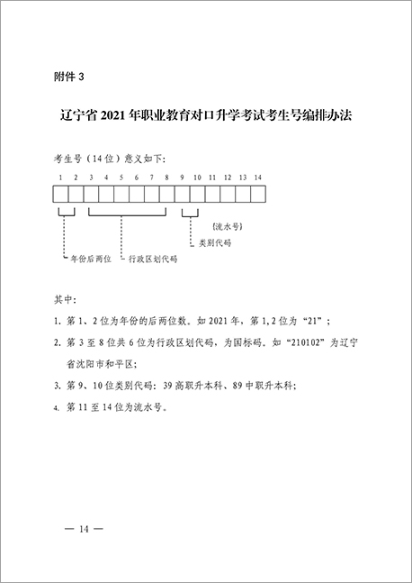 3.辽宁省2021年职业教育对口升学考试考生号编排办法