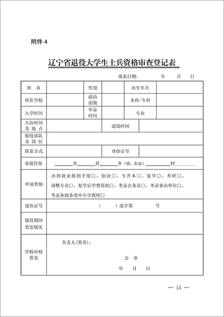 4.辽宁省退役大学生士兵资格审查登记表
