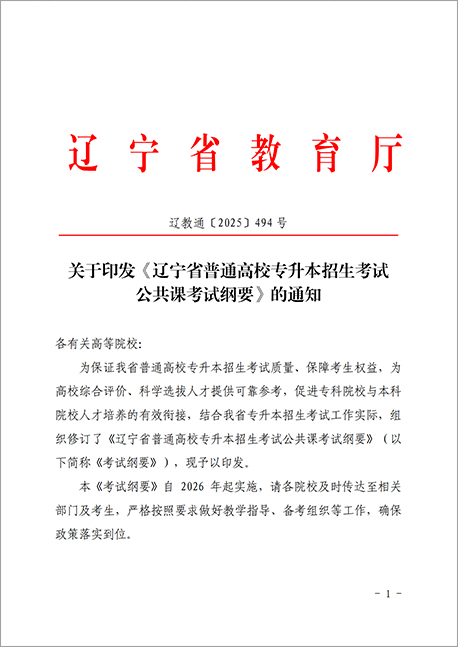 为保证我省普通高校专升本招生考试质量、保障考生权益,为高校综合评价、科学选拔人才提供可靠参考,促进专科院校与本科院校人才培养的有效衔接,结合我省专升本招生考试工作实际,组织修订了《辽宁省普通高校专升本招生考试公共课考试纲要》(以下简称《考试纲要》),现予以印发。