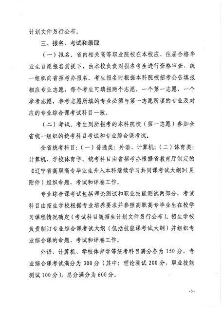 全省统考科目:(一)普通类:外语、计算机;(二)体育类:计算机、学校体育学。统考科目由省招考办根据省教育厅制定的《辽宁省高职高专毕业生升入本科继续学习共同课考试大纲》(见附件)组织命题、考试和评卷工作。