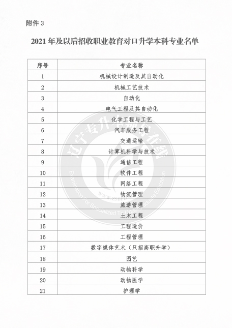 附件3 2021年及以后招收职业教育对口升学本科专业名单