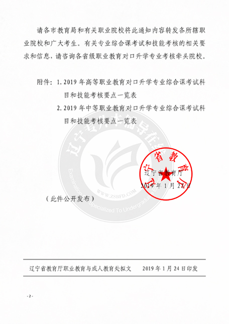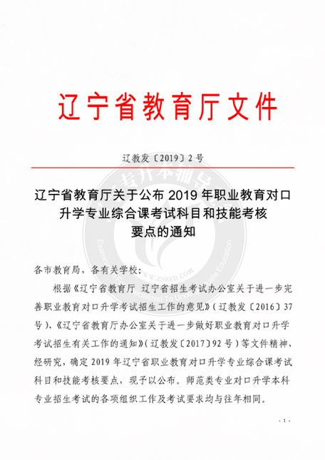 辽宁省教育厅关于公布2019年职业教育对口升学专业综合课考试科目和技能考核要点的通知